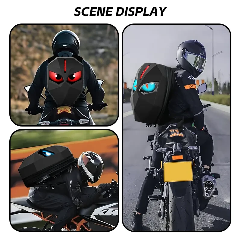 Mochila con ojos led programable ideal para motocicletas o bicicletas.